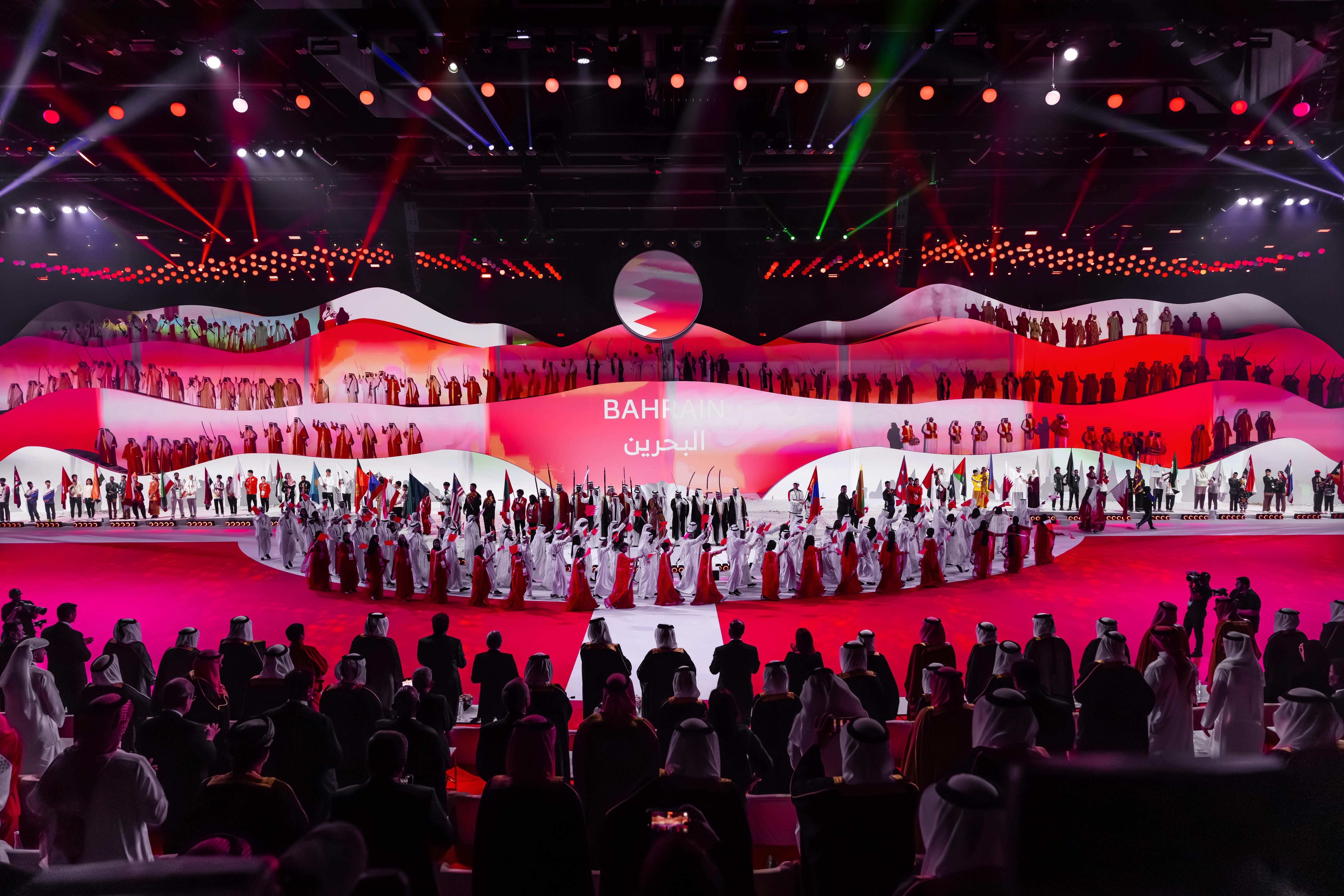 وقد بدأ الحفل بوصول نائب راعي الحفل، ثم عزف السلام الملكي ورفع علم مملكة البحرين، تلا ذلك تقديم عرضٍ فنيٍّ عبارة عن لوحةٍ مميزةٍ جمعت بين الأصالة البحرينية والعراقة الآسيوية في مشهدٍ خطف الأنظار، مزج بين التقنية الحديثة والهوية الثقافية لمملكة البحرين، إضافةً إلى فقرة العرضة البحرينية، والفرقة العسكرية الملكية بقوة دفاع البحرين، ودخول طابور الدول المشاركة في الدورة، حيث قوبل دخول وفد مملكة البحرين بتحيةٍ كبيرةٍ وترحيبٍ حارٍّ من الجماهير، وتشرف كلٌّ من لاعب منتخبنا لفنون القتال المختلطة والمصارعة عبدالله جمال أحمد، ولاعبة منتخبنا للترايثلون لولوة طارق الدوسري، برفع علم المملكة، وارتدى الوفد البحريني الزي الشعبي للتعبير عن ثقافة المملكة وهويتها وعراقة تاريخها.