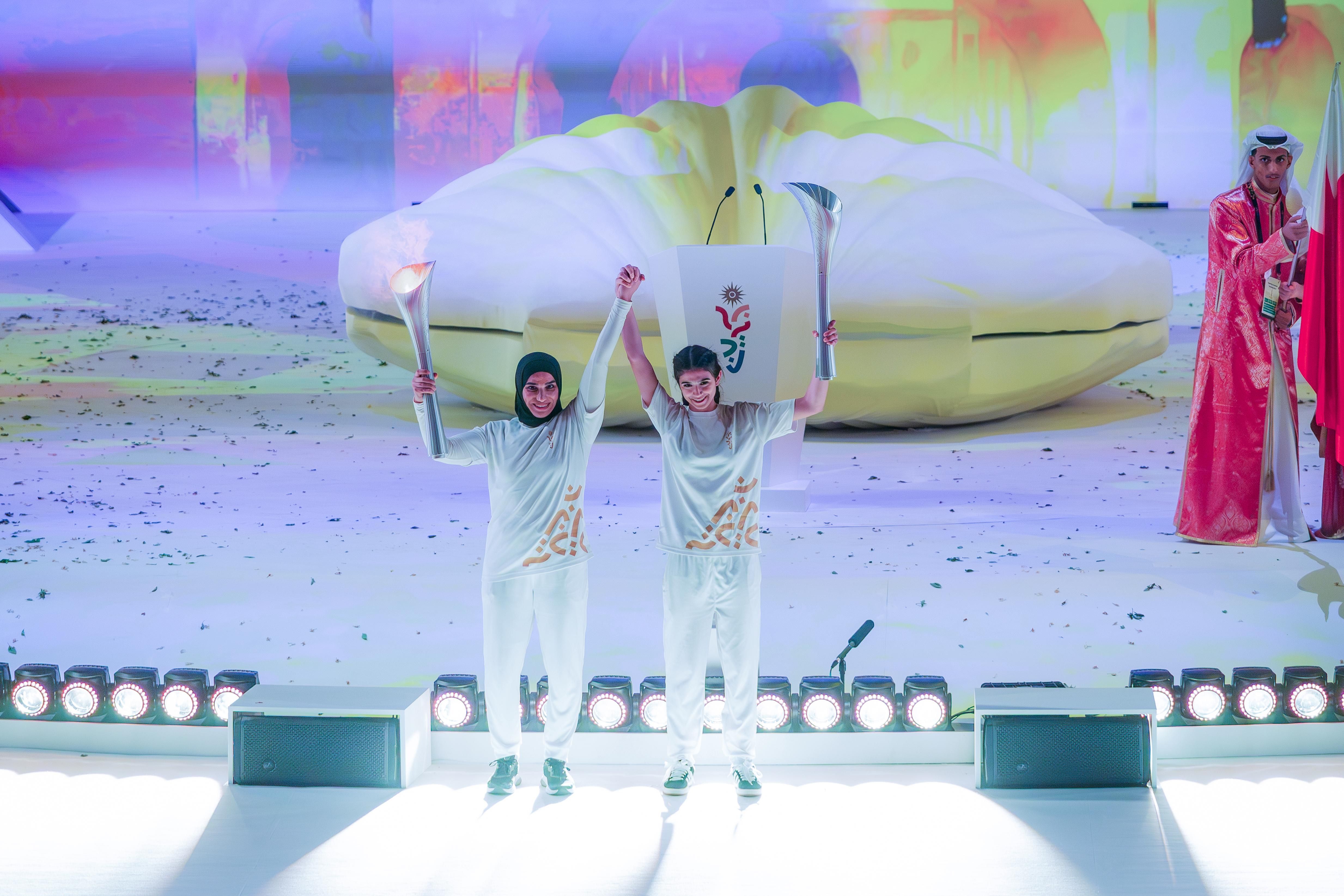 وقد تم عرض لقطاتٍ مصوَّرةٍ حول حمل شعلة الأولمبياد في عددٍ من محافظات مملكة البحرين، ثم إشعالها رسميًا عن طريق البطلة الأولمبية السابقة لألعاب القوى رُقية الغسرة.