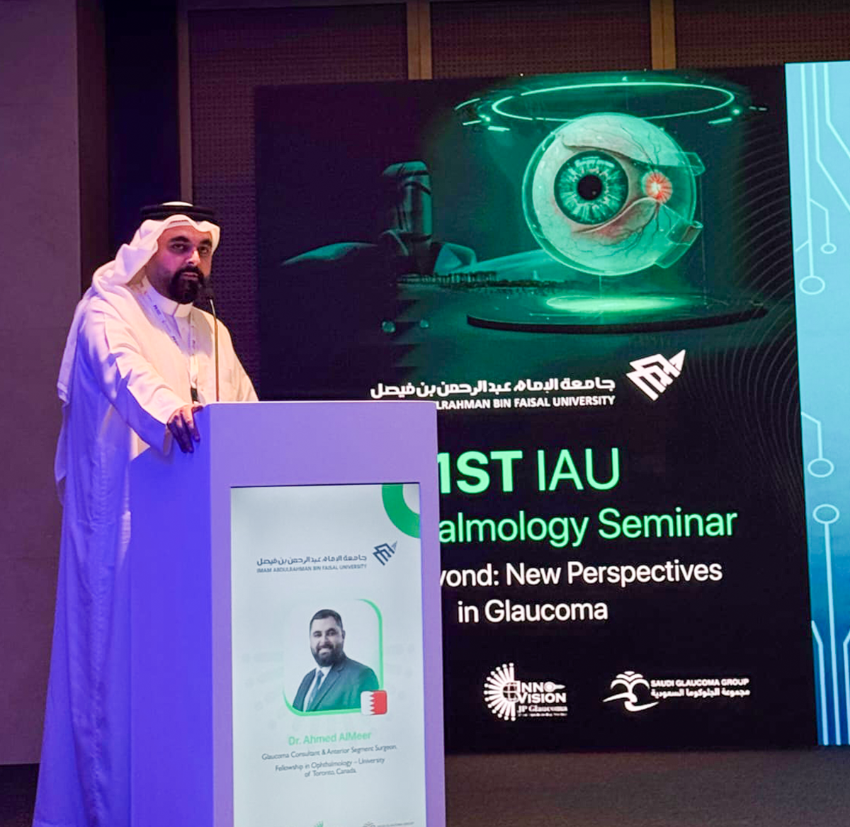 شارك الدكتور أحمد المير، استشاري طب وجراحة العيون والمتخصص في المياه الزرقاء والجراحات المتقدمة للجزء الأمامي من العين، في الملتقى الأول لطب العيون - تخصص الجلوكوما الذي نظمته جامعة الإمام عبدالرحمن بن فيصل (IAU) يوم السبت 11 أكتوبر 2025 في الخبر، المملكة العربية السعودية، تحت عنوان:"See Beyond: New Perspectives in Glaucoma".